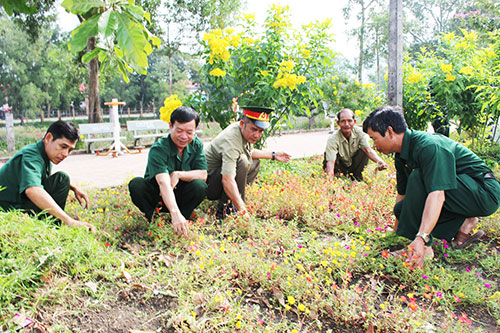Cựu chiến binh xã Xuân Thọ, huyện Xuân Lộc trồng hoa làm đẹp khuôn viên trên tuyến đường do Hội tự quản.