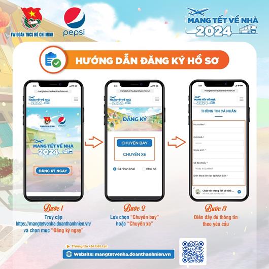 Theo đó, sinh viên, thanh niên công nhân, người lao động có hoàn cảnh khó khăn có nhu cầu được hỗ trợ vé sẽ làm hồ sơ đăng ký. Việc đăng ký có thể thực hiện bằng 2 cách: gửi phiếu đăng ký bản giấy về các tỉnh, thành đoàn hoặc đăng ký trực tiếp trên website: mangtetvenha.doanthanhnien.vn. Đối với hồ sơ đăng ký trực tiếp trên website, Ban Tổ chức sẽ cấp mã định danh từng hồ sở và gửi danh sách cho các tỉnh, thành đoàn quản lý và thông tin cho đối tượng tham gia.
