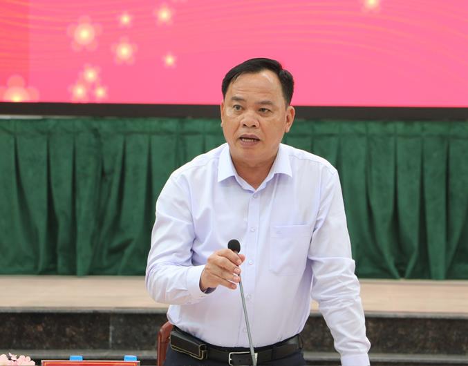 Phó Chủ tịch UBND tỉnh Võ Văn Phi phát biểu tại buổi làm việc.