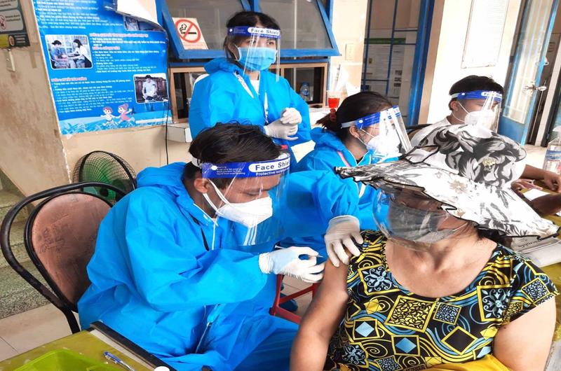 Sinh viên Nguyễn Văn Vọng trong một lần hỗ trợ tiêm vaccine phòng chống dịch bệnh Covid-19 cho người dân