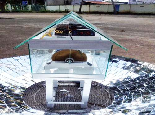 Sản phẩm máy sấy nông sản tự động bằng hệ thống gương cầu lõm của 2 em Hoàn và Duy.