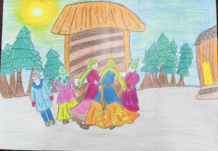 Tác phẩm tranh vẽ Điệu múa truyền thống của nước Nga của em Nguyễn Khánh Nhi, học sinh lớp 5/1, Trường TH-THCS Vĩnh Thanh, H.Nhơn Trạch
