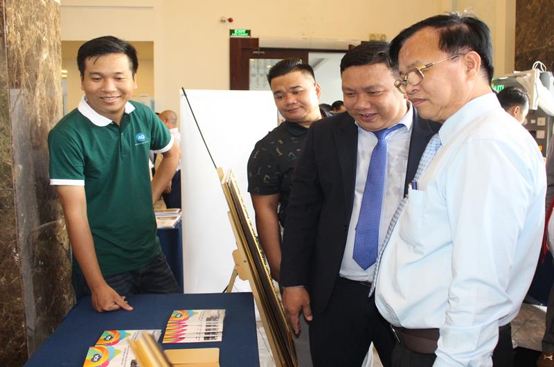 Chủ tịch UBND tỉnh Cao Tiến Dũng tham quan các gian hàng trưng bày tại chương trình.