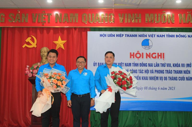 Anh Nguyễn Hiếu Trung (bìa phải) được hiệp thương kiện toàn giữ chức danh Chủ tịch Hội LHTN tỉnh khóa VII, nhiệm kỳ 2019-2024