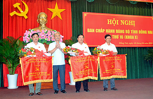 Tại hội nghị, Ban Thường vụ Tỉnh ủy đã tặng cờ thi đua cho 3 đảng bộ đạt trong sạch, vững mạnh tiêu biểu năm 2018; tặng bằng khen cho 3 đảng bộ hoàn thành tốt nhiệm vụ năm 2018; tặng bằng khen cho 2 đơn vị hoàn thành xuất sắc nhiệm vụ năm 2018; tặng cờ cho 7 đơn vị và 3 tập thể lãnh đạo, thực hiện quản lý hoàn thành xuất sắc nhiệm vụ 5 năm liền.