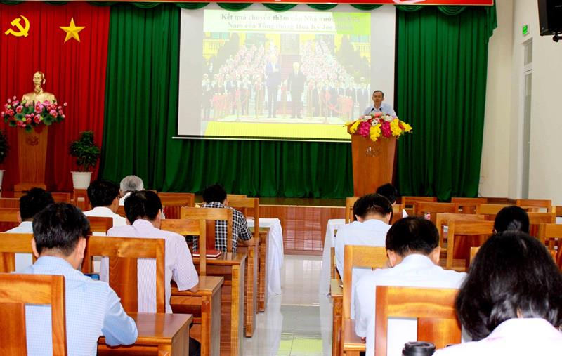 Hội nghị đã được thông tin về 2 chuyên đề gồm:“Thực trạng chuyển đổi số tỉnh Đồng Nai và định hướng thời gian tới” do Giám đốc Sở Thông tin và Truyền thông Tạ Quang Trường trình bày và “Kết quả chuyến thăm cấp Nhà nước đến Việt Nam của Tổng thống Hoa Kỳ Joe Biden từ ngày 10-9 đến ngày 11-9-2023” do Phó Trưởng Ban Tuyên giáo Tỉnh ủy Phạm Tấn Linh trình bày.