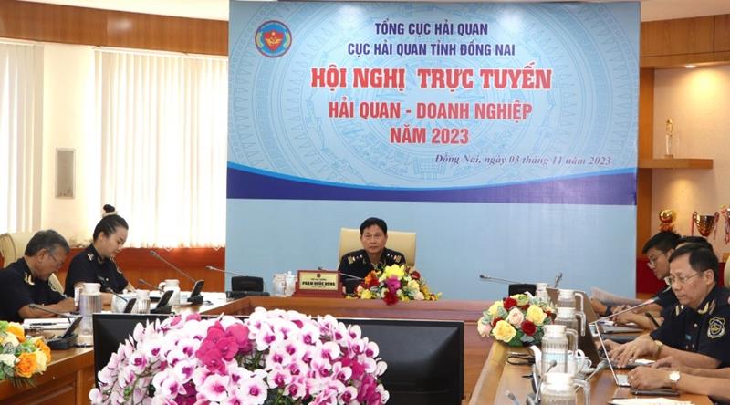 (CTT-Đồng Nai) - Chiều 3-11, Phó Cục trưởng Cục Hải quan Đồng Nai (HQĐN) Phạm Quốc Hùng đã chủ trì Hội nghị trực tuyến Hải quan-Doanh nghiệp 2023. Tham gia buổi đối thoại có hơn 100 doanh nghiệp xuất nhập khẩu và các hiệp hội doanh nghiệp, thương mại Nhật Bản, Hàn Quốc, Đài Loan cùng lãnh đạo Cục HQĐN, các phòng chuyên môn, chi cục hải quan trên địa bàn tỉnh.