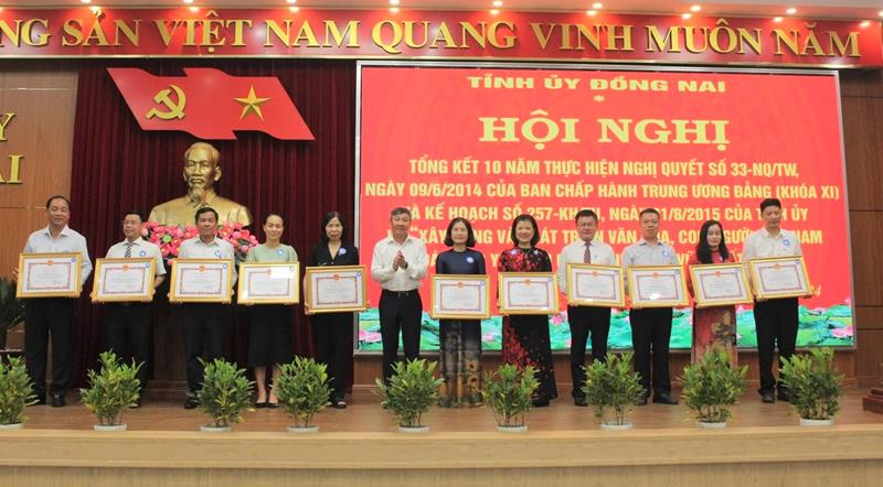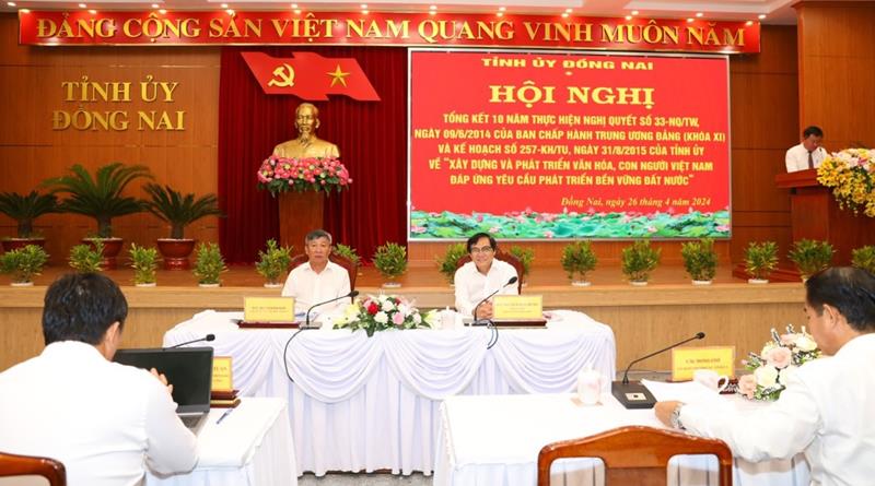 (CTT-Đồng Nai) - Sáng 26-4, tại Tỉnh ủy đã diễn ra Hội nghị tổng kết 10 năm thực hiện Nghị quyết số 33-NQ/NQ ngày 9-6-2014 của Ban Chấp hành Trung ương Đảng (khóa XI) và Kế hoạch số 257-KH/TU ngày 31-8-2015 của Tỉnh ủy về “Xây dựng và phát triển văn hóa, con người Việt Nam đáp ứng yêu cầu phát triển bền vững đất nước”.