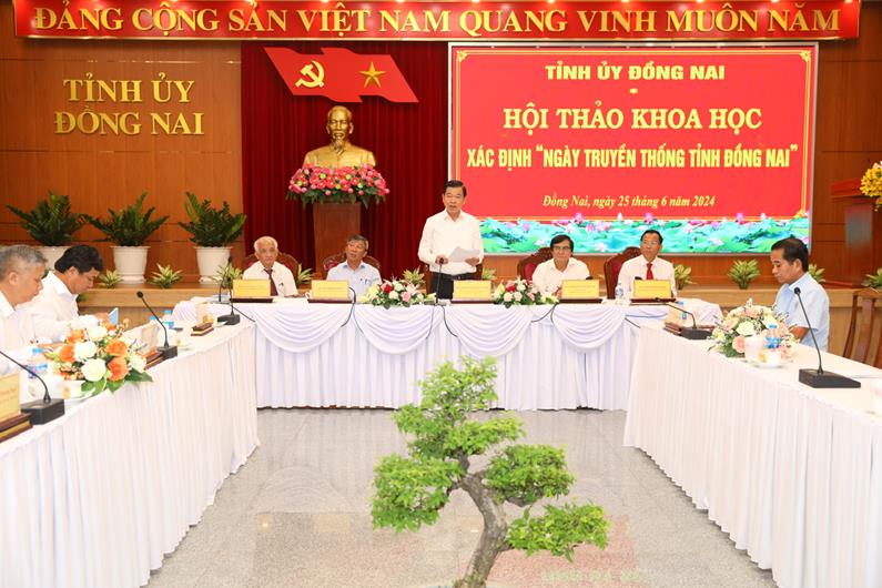 (CTT-Đồng Nai) - Ngày 25-6, Ban Thường vụ Tỉnh ủy đã tổ chức hội thảo khoa học xác định "Ngày truyền thống tỉnh Đồng Nai". Các đồng chí: Nguyễn Hồng Lĩnh, Ủy viên Trung ương Đảng, Bí thư Tỉnh ủy; Hồ Thanh Sơn, Phó Bí thư thường trực Tỉnh ủy; Phạm Xuân Hà, Ủy viên Ban Thường vụ Tỉnh ủy, Trưởng Ban Tuyên giáo Tỉnh ủy; Nguyễn Sơn Hùng, Phó Chủ tịch UBND tỉnh và PGS-TS. Trần Đức Cường, Chủ tịch Hội Khoa học Lịch sử Việt Nam chủ trì hội thảo.