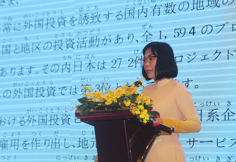 Phó Chủ tịch UBND tỉnh Nguyễn Thị Hoàng chia sẻ, trao đổi thông tin với các doanh nghiệp Nhật Bản bên lề hội nghị