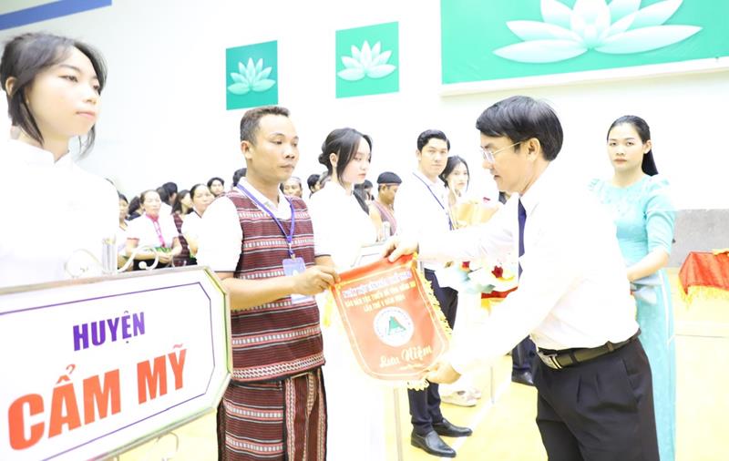 Ban tổ chức trao cờ và hoa lưu niệm cho các đơn vị tham gia ngày hội