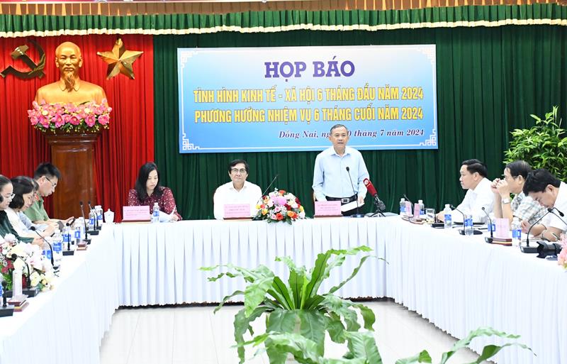 (CTT-Đồng Nai) - Ngày 30-7, Phó Chủ tịch UBND tỉnh Nguyễn Sơn Hùng cùng Phó Trưởng ban Tuyên giáo Tỉnh ủy Phạm Tấn Linh và Trưởng BanVăn hóa - Xã hội HĐND tỉnh Huỳnh Ngọc Kim Mai đã chủ trì buổi họp báo thông tin về tình hình kinh tế - xã hội 6 tháng năm 2024 và phương hướng, nhiệm vụ trong những tháng cuối năm. Tham dự còn có, lãnh đạo các sở, ngành, địa phương.