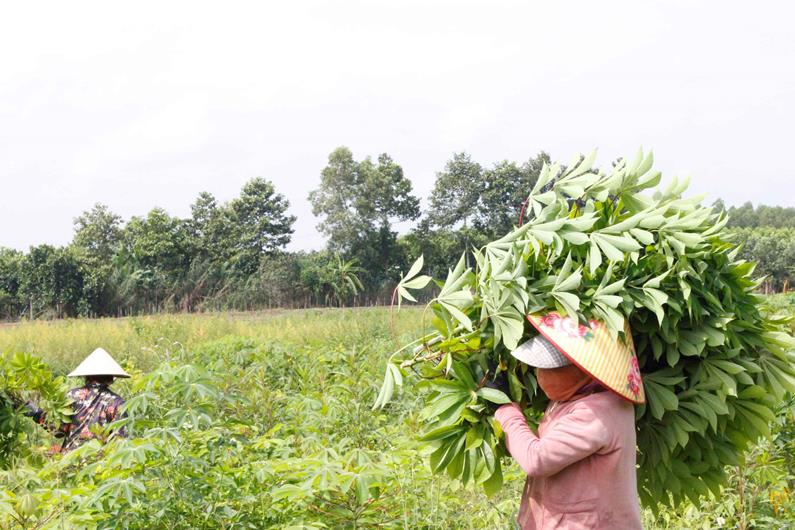 HTX Tân Yên thu hoạch lá mì xuất khẩu tại vùng trồng ở xã Hưng Thịnh, H.Thống Nhất