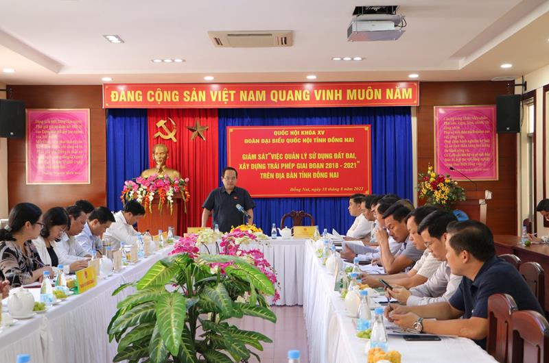 TTĐT - Mới đây, đoàn giám sát của Đoàn đại biểu Quốc hội tỉnh do Phó bí thư Tỉnh ủy, Trưởng đoàn đại biểu Quốc hội tỉnh Quản Minh Cường làm trưởng đoàn đã thực hiện giám sát đối với Sở Xây dựng về việc quản lý và sử dụng đất đai, xây dựng trái phép giai đoạn 2018-2021 trên địa bàn tỉnh.