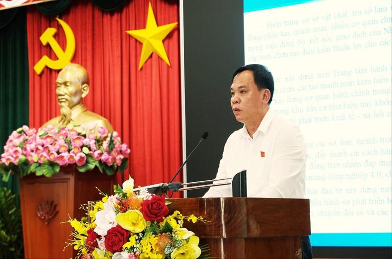 Phó Chủ tịch UBND tỉnh Võ Tấn Đức đọc tờ trình của Ban Thường vụ Tỉnh ủy trình Ban Chấp hành Đảng bộ tỉnh xem xét, cho ý kiến về chủ trương chọn vị trí để di dời Trung tâm hành chính – chính trị của tỉnh về khu vực Khu công nghiệp Biên Hòa 1. ảnh: Đắc Nhân