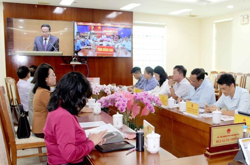 Tại điểm cầu Đồng Nai, Phó trưởng Đoàn chuyên trách Đoàn đại biểu Quốc hội (ĐBQH) tỉnh Bùi Xuân Thống chủ trì hội nghị. Cùng dự có Phó Chủ tịch HĐND tỉnh Hoàng Thị Bích Hằng, các ĐBQH tỉnh và lãnh đạo các sở, ngành có liên quan.