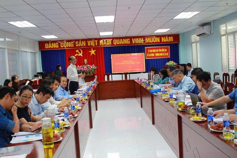 (CTT-Đồng Nai) Đoàn công tác Ủy ban Xã hội của Quốc hội do ông Đặng Thuần Phong, Phó Chủ nhiệm Ủy ban Xã hội của Quốc hội làm Trưởng đoàn vừa có buổi khảo sát về tình hình thực hiện chính sách, pháp luật về việc làm tại Đồng Nai và nắm bắt đóng góp, kiến nghị về sửa đổi, bổ sung Luật Việc làm (sửa đổi).