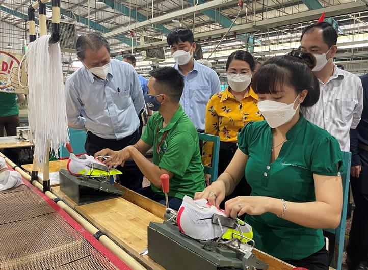 Lãnh đạo các ban Đảng Tỉnh ủy, thăm hỏi tình hình sản xuất của công nhân Công ty TNHH Chang Shin Việt Nam, KCN Thạnh Phú, huyện Vĩnh Cửu.