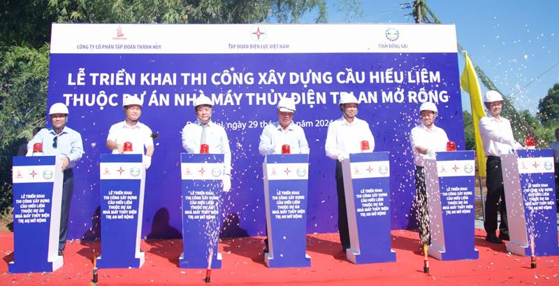 (CTT-Đồng Nai) - Ngày 29-12, Phó Bí thư Tỉnh ủy, Chủ tịch UBND tỉnh Võ Tấn Đức đã tham dự lễ triển khai thi công xây dựng cầu Hiếu Liêm thuộc Dự án Nhà máy thủy điện Trị An mở rộng do Tập đoàn Điện lực Việt Nam (EVN) tổ chức.