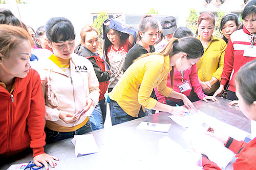 Công nhân Công ty KL Texwell Vina nhận tiền lương do UBND tỉnh tạm ứng ngân sách chi trả.