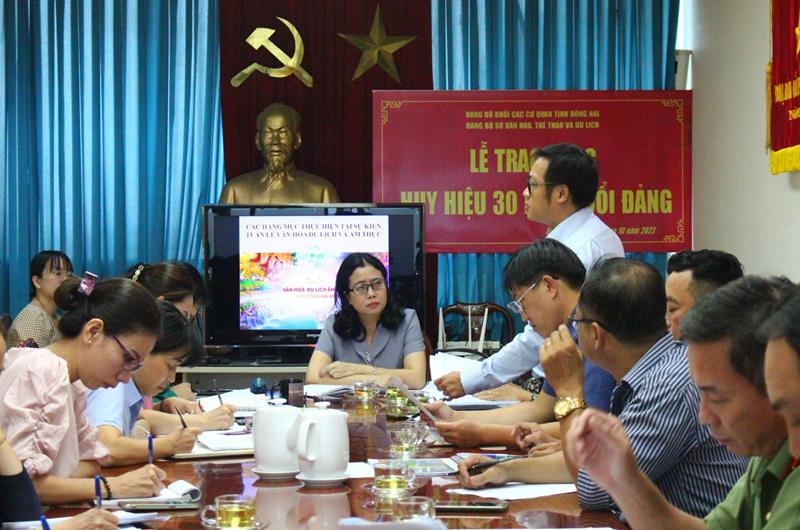 Giám đốc Sở VH-TTDL Lê Thị Ngọc Loan phát biểu tại buổi làm việc về tổ chức Tuần lễ Văn hóa - du lịch - ẩm thực Đồng Nai năm 2022