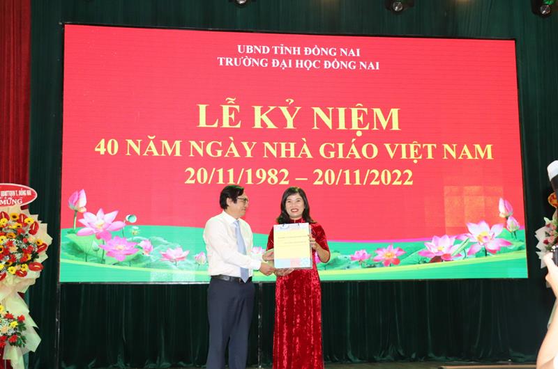Nhân dịp này, Phó Chủ tịch UBND tỉnh Nguyễn Sơn Hùng đã có phần quà tặng cho PGS-TS Huỳnh Bùi Linh Chi, là nữ PGS đầu tiên của Trường Đại học Đồng Nai. Ngân hàng Agribank Đồng Nai và Tổng công ty Công nghiệp thực phẩm (Dofico) tặng học bổng cho sinh viên của trường với tổng số tiền 250 triệu đồng.