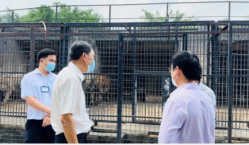 Cơ quan chuyên môn kiểm tra khu nuôi hổ tại Khu du lịch sinh thái Vườn Xoài
