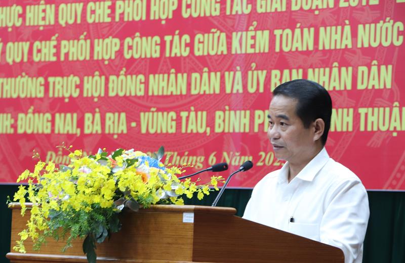 (CTT-Đồng Nai) - Chiều 29-6, Kiểm toán nhà nước (KTNN) tổ chức Hội nghị sơ kết thực hiện quy chế phối hợp công tác giai đoạn 2012-2023 và ký quy chế phối hợp công tác giữa KTNN với thường trực HĐND, UBND các tỉnh: Đồng Nai, Bà Rịa – Vũng Tàu, Bình Phước và Bình Thuận.