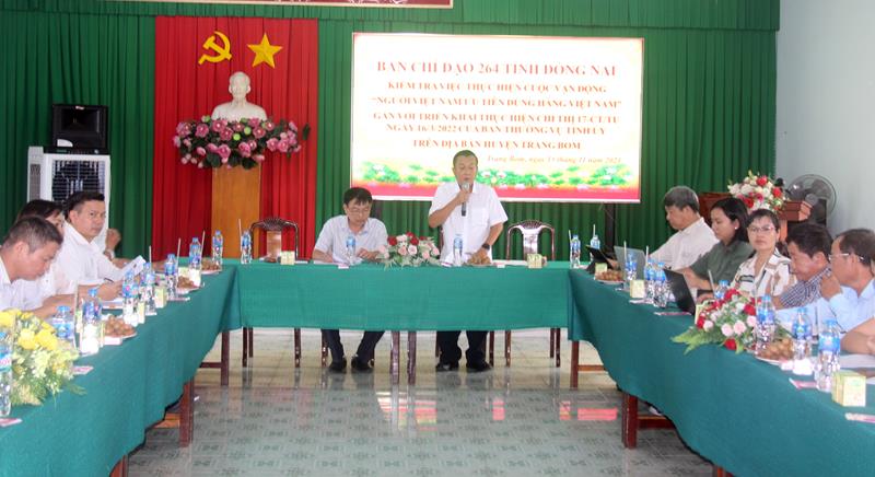 (CTT-Đồng Nai) - Đoàn kiểm tra số 5 của Ban Chỉ đạo cuộc vận động Người Việt Nam ưu tiên dùng hàng Việt Nam (Ban Chỉ đạo 264) tỉnh do Phó Giám đốc Sở Công thương, Phó Trưởng ban Ban Chỉ đạo 264 tỉnh Thái Thanh Phong làm trưởng đoàn vừa về kiểm tra việc thực hiện cuộc vận động Người Việt Nam ưu tiên dùng hàng Việt Nam (gọi tắt là cuộc vận động) gắn với triển khai thực hiện Chỉ thị số 17-CT/TU ngày 16-3-2022 của Ban TVTU và khảo sát các chuỗi liên kết sản xuất gắn với tiêu thụ nông sản tại H.Trảng Bom.