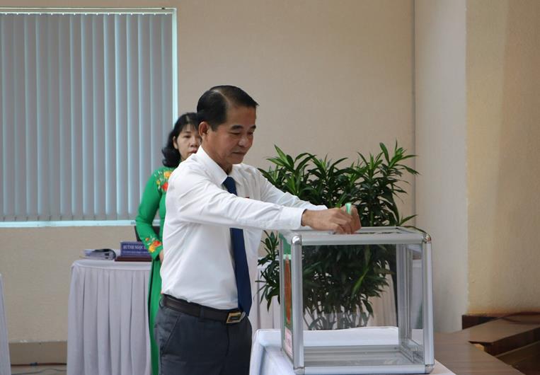 Các đại biểu HĐND tỉnh bỏ phiếu bầu Trưởng ban Pháp chế HĐND tỉnh nhiệm kỳ 2021-2026.