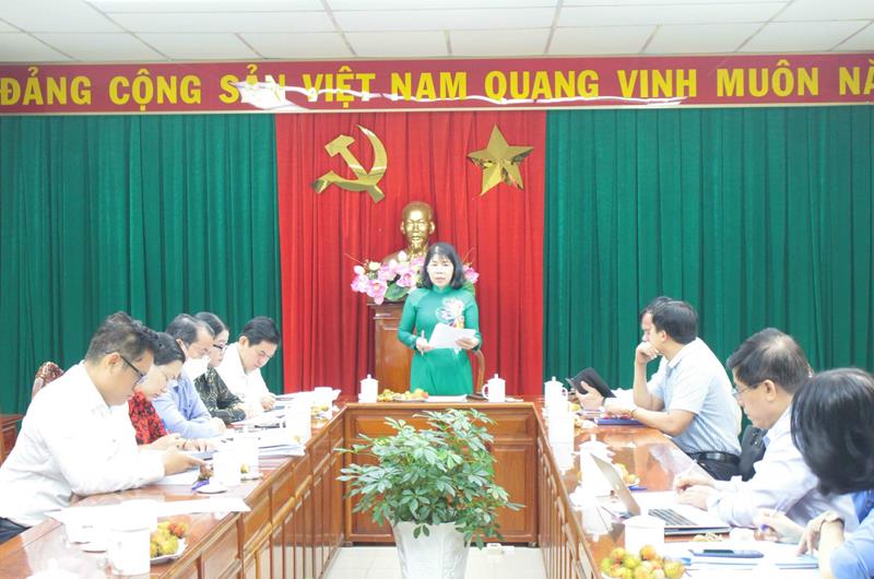 Phó Chủ tịch HĐND tỉnh Hoàng Thị Bích Hằng phát biểu tại hội nghị thống nhất nội dung trình tại kỳ họp thứ 9, HĐND tỉnh