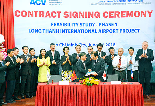 Ngày 2-6, tại TP.Hồ Chí Minh, Tổng công ty Cảng hàng không Việt Nam - CTCP (ACV) đã tổ chức lễ ký kết hợp đồng “Tư vấn khảo sát và lập báo cáo nghiên cứu khả thi (FS) giai đoạn 1” dự sân bay quốc tế Long Thành.