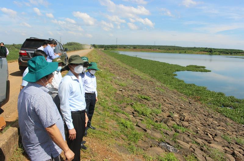 Phó chủ tịch UBND tỉnh Võ Văn Phi đi kiểm tra công trình thuỷ lợi hồ Cầu Mới