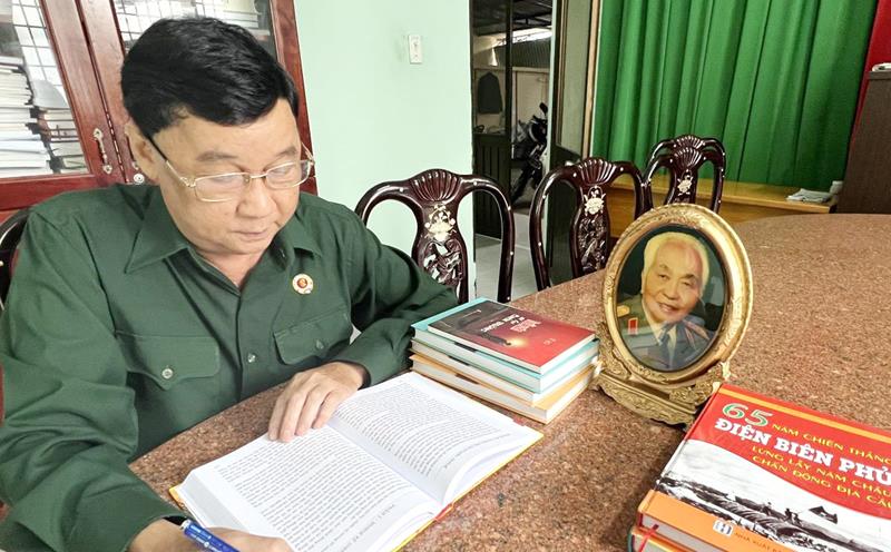 Đại tá Huỳnh Công Phúc nghiên cứu những tài liệu liên quan Đại tướng Võ Nguyên Giáp