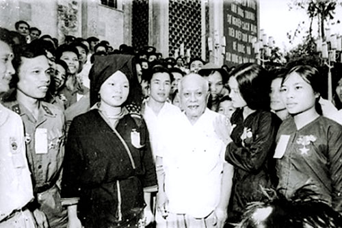 Chủ tịch Tôn Đức Thắng với các đại biểu tham dự Đại hội Ba sẵn sàng toàn miền Bắc (Ảnh T.L).