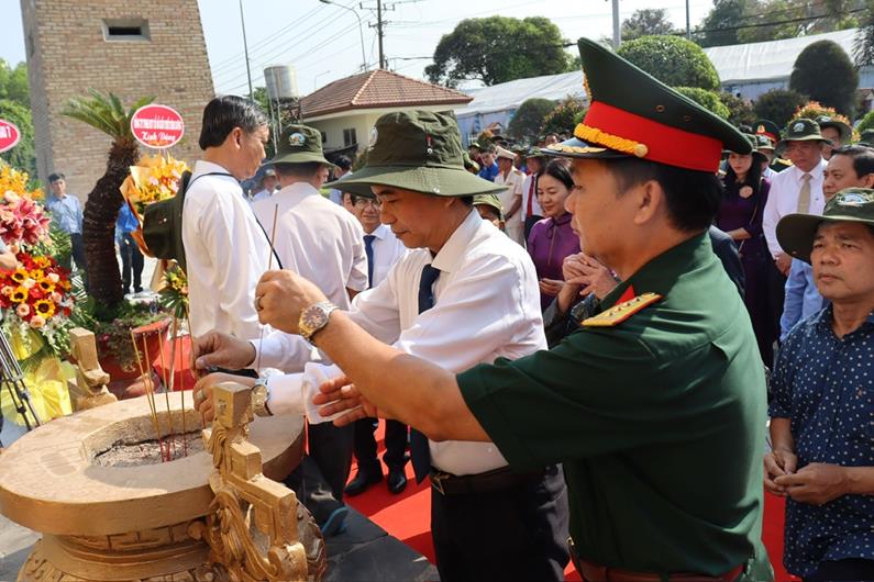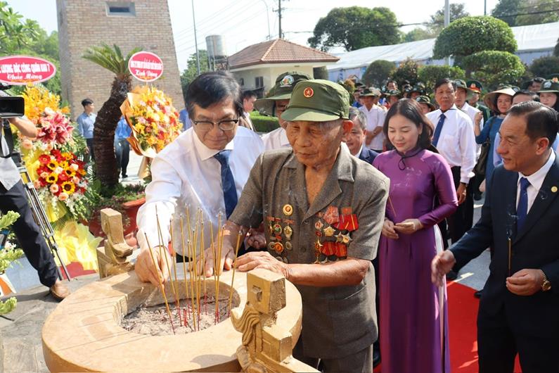Sau lễ dâng hương tưởng niệm, các đại biểu dành phút mặc niệm tưởng nhớ anh linh Chủ tịch Hồ Chí Minh vĩ đại, các anh hùng liệt sĩ và tham quan khu di tích vừa được trùng tu, phục hồi- nơi giáo dục truyền thống lịch sử cách mạng cho thế hệ ngày nay.