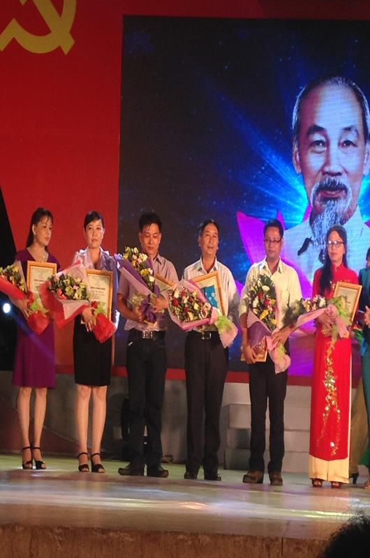 Anh Trần Việt Liêm (thứ 3 từ trái qua) đoạt giải 3 sáng tác lời mới bài bản tài tử và vọng cổ