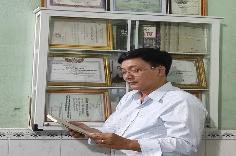 Anh Trần Việt Liêm, ngụ tại P.Phước Tân, TP.Biên Hòa bên các giải thưởng và tác phẩm.