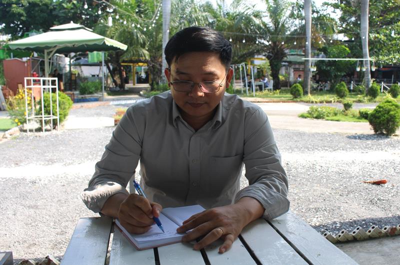 Anh Trần Việt Liêm đang sáng tác lời mới bài bản tài tử và vọng cổ