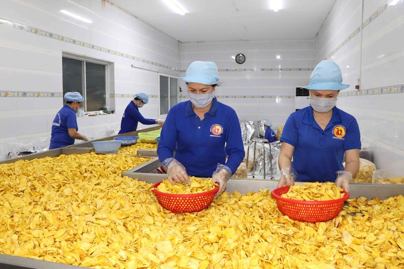 Nhiều sản phẩm chế biến từ trái cây của Công ty TNHH thương mại sản xuất Thuận Hương, huyện Định Quán đạt chứng nhận OCOP. Ảnh: Song Lê