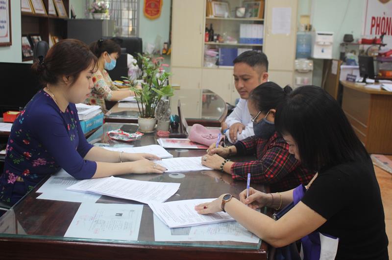 Người dân (phải) tới Phòng Công chứng số 4, H.Long Thành (thuộc Sở Tư pháp) giao dịch