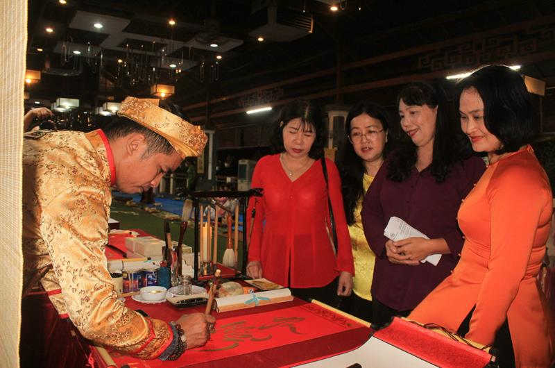 Các đồng chí lãnh đạo nữ xin xem viết thư pháp tại quầy thư pháp