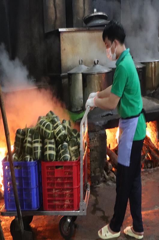 Các lò làm chả Bắc ở xã Gia Kiệm (H.Thống Nhất) vẫn giữ cách luộc chả bằng bếp củi. Ảnh: Phan Anh