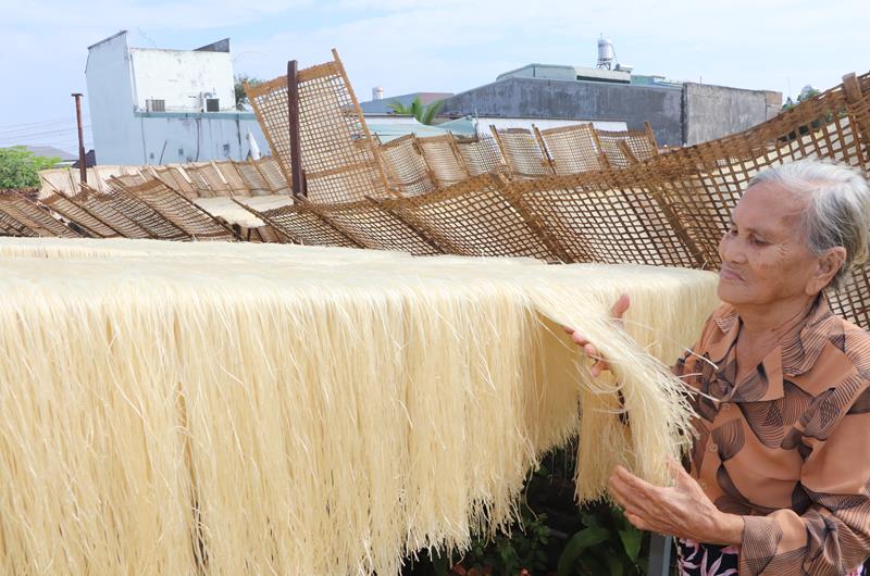 Bà Nguyễn Thị Xuân, năm nay 80 tuổi thuộc lớp thâm niên gắn bó với nghề làm miến Bắc ở P.Tân Biên, TP.Biên Hòa