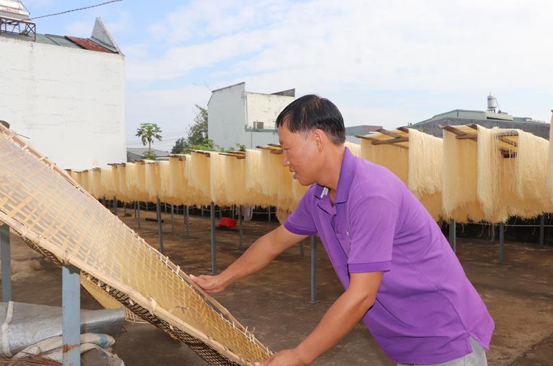 Ông Phạm Công Khoát, đại diện cơ sở bún miến Kiều Oanh tại P.Tân Biên cho hay, cơ sở vẫn giữ được hơn 3 ngàn m2 đất làm xưởng sản xuất và sân phơi miến. Hiện quy mô sản xuất của cơ sở được mở rộng gấp 3 lần so với vài năm trước đó. Ngoài tạo việc làm thường xuyên cho hàng chục lao động còn có hàng chục hộ dân ở địa phương làm gia công cuốn miến cho cơ sở. Dịch Covid-19 có ảnh hưởng đến hoạt động sản xuất, nhất là về thị trường tiêu thụ nhưng cơ sở vẫn phát triển sản xuất, đảm bảo việc làm ổn định cho người lao động tại địa phương.