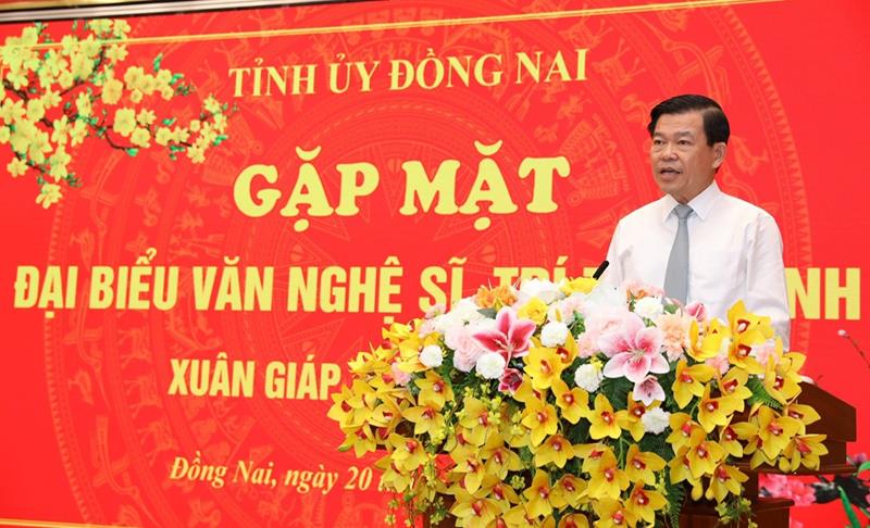 Bí thư Tỉnh ủy Nguyễn Hồng Lĩnh đề nghị lãnh đạo tỉnh, các sở ban ngành, Đảng đoàn Hội Văn học nghệ thuật tỉnh, Đảng ủy Liên hiệp các Hội khoa học và kỹ thuật tạo điều kiện và môi trường tối đa để đội ngũ văn nghệ sĩ, trí thức Đồng Nai nghiên cứu, sáng tạo cho ra nhiều tác phẩm có giá trị để đời nhằm thúc đẩy các hoạt động văn hóa, văn nghệ của tỉnh ngày càng phát triển, lan tỏa rộng rãi văn hóa trong Nhân dân.