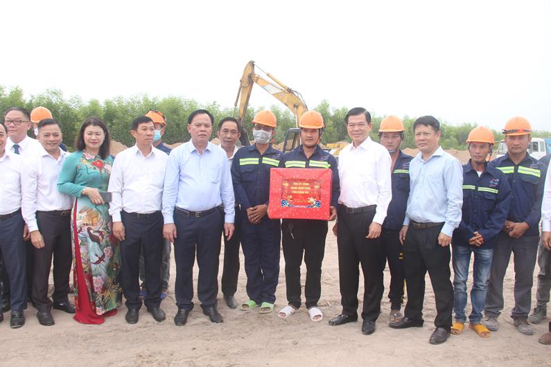 Lãnh đạo tỉnh tặng quà tết cho công nhân đang thi công dự án dự án Đường 25C (giai đoạn 1) tại H.Nhơn Trạch.