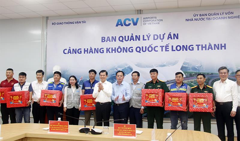 Lãnh đạo tỉnh tặng quà tết cho các đơn vị thi công các gói thầu thuộc dự án Cảng hàng không Quốc tế Long Thành.