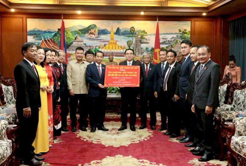 Đoàn công tác của tỉnh đã trao tặng kinh phí của Đồng Nai cho Chính quyền tỉnh Champasak