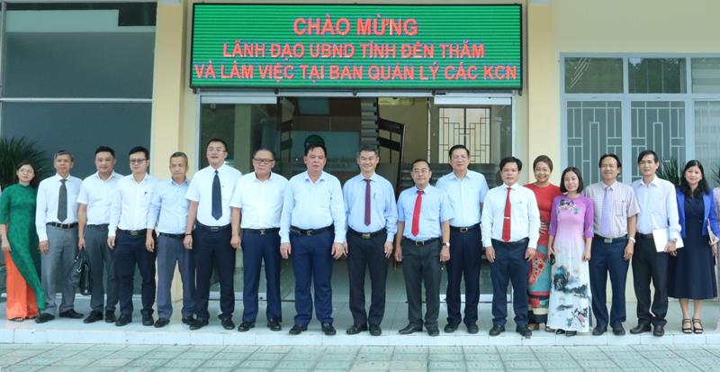Chủ tịch UBND tỉnh Võ Tấn Đức vầ đoàn công tác chụp hình lưu niệm cùng cán bộ, công nhân viên Ban Quản lý các khu công nghiệp Đồng Nai